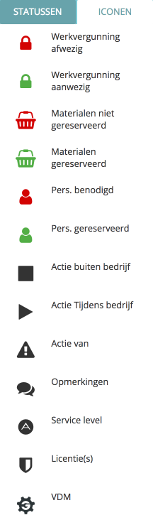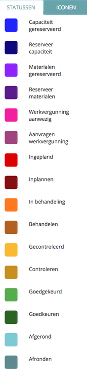 onderdeel Planning. Scroll in de legenda naar beneden voor alle statussen.