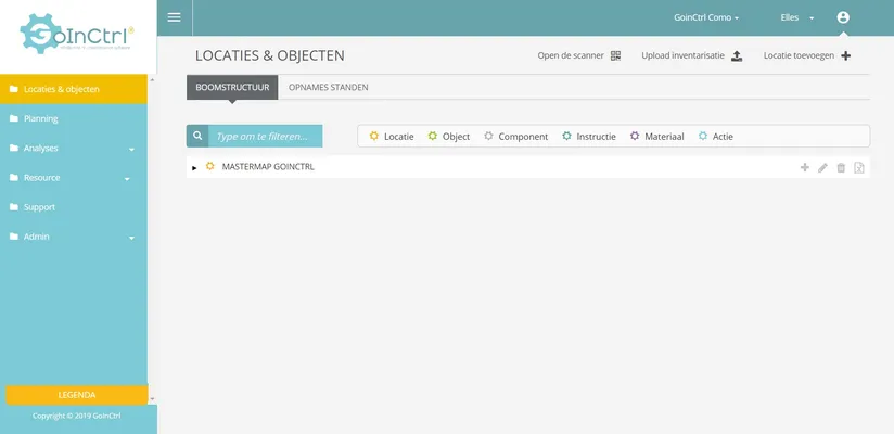 Hier vindt u onder andere alle gegevens van alle objecten en onderliggende componenten die in de applicatie GoInCtrl staan.