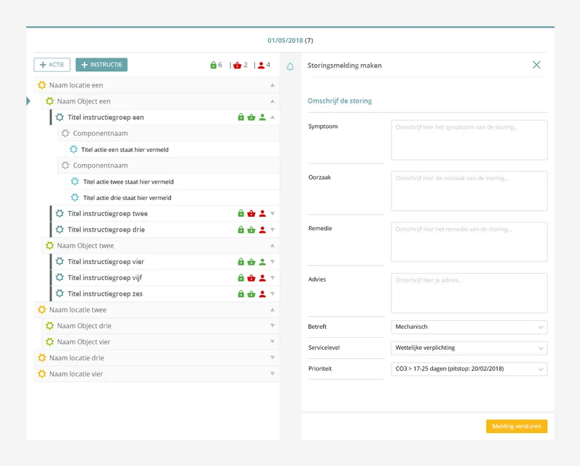 5. Klik op een storingsmelding van een object of een component. Aan de rechterkant storingsmelding van het gekozen object of