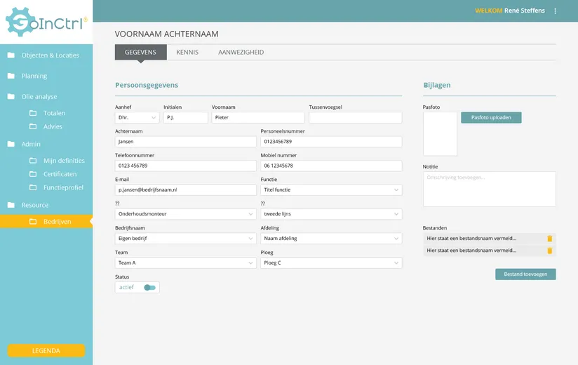 3. Naast de persoonsgegevens kunt u ook bijlagen toevoegen. Zo is er ruimte om een pasfoto, notities en bestanden op te nemen.